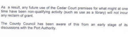 There was not a word about the lease of part of the building for the non-qualifying purpose of housing a public library, so how can the Leader state with certainty that "All of these conditions have now been met".
