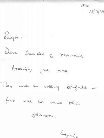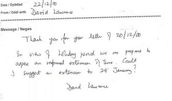 This was in the form of a memo written, apparently, by Mr David Lawrence.