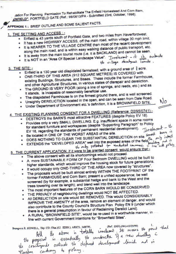 Even more fascinating still is that many of the agent's arguments appear in Mr Roger Barrett-Evans' letter of support written to the Welsh Office after the application was called in for determination by an inspector.
