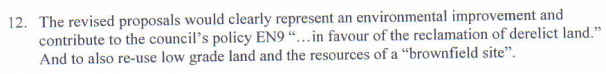 To which the the planning officer who wrote the notes had responded "It is not derelict land" and, in response to the brownfield site claim: "NO!" and "it is not a brownfield site"!.