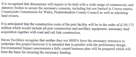 In any case, on HFL's own assessment a container port would cost £150-175 million and because it was in an SSSI, would require extensive consultations with, among others, Crown Estates, Countryside Commission for Wales and Pembrokeshire County Council.