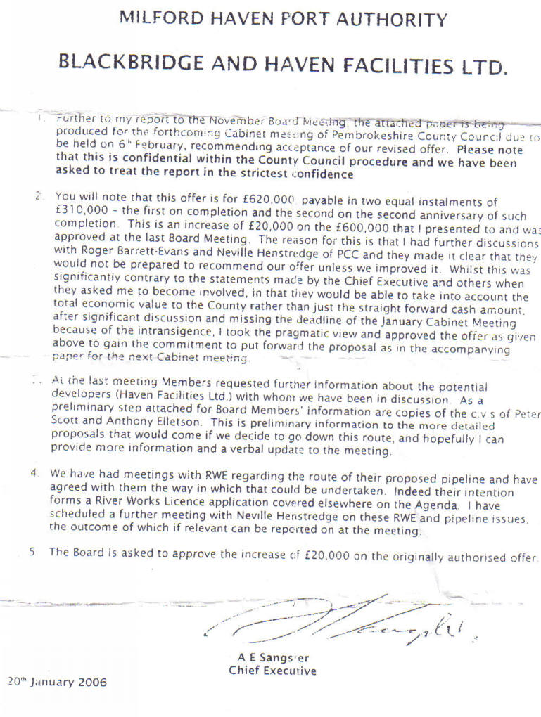 Mr Sangster' memo to MHPA board