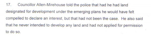 Certainly not the Ombudsman whose findings that Cllr Allen-Mirehouse had breached the code depended entirely on his ownership of development land within the national park area.