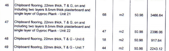 Now it could be that 48 and 49 are correctly priced and in 48 and 49 the builder has generously thrown in the plasterboard for free, or, on the other hand, it could be that items 46 and 47 are correctly priced and the builder has charged for plasterboard that wasn't used in 48 and 49.